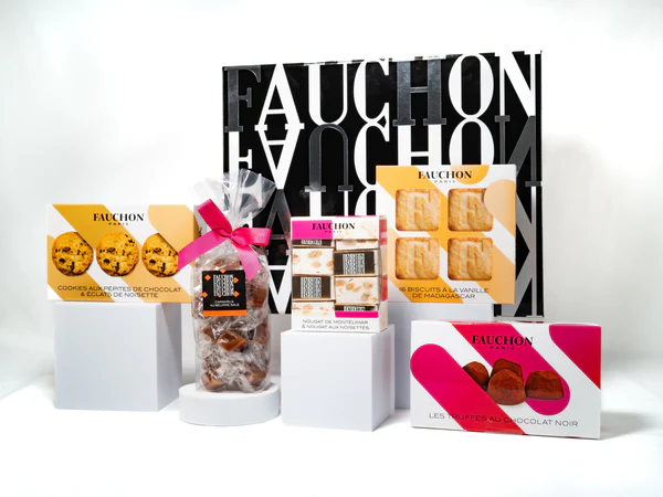 A luxurious holiday gift box that offers a refined selection of gourmet products. It’s designed for someone who appreciates elegance and quality — inside may be fine preserves, artisanal delicacies, small jars of jam, chocolates, or other culinary treasures.