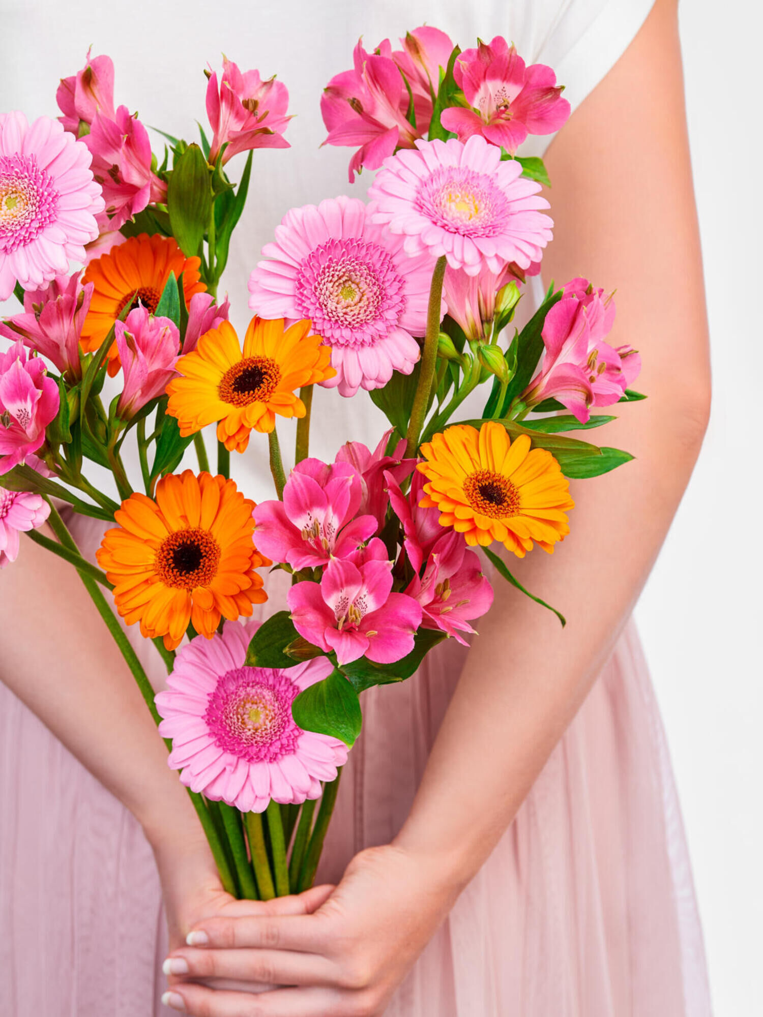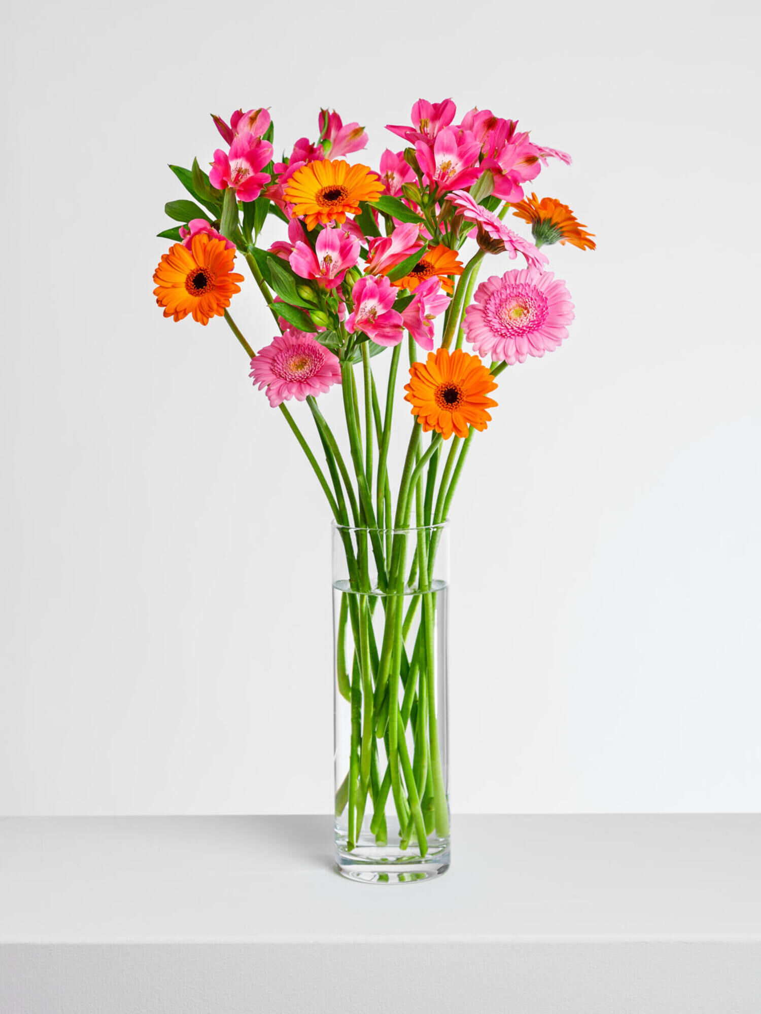 Ein wunderschöner Mix aus Germini und pinken Alstromerien. Der perfekte Blumengruß als kleine Aufmerksamkeit für Familie und Freunde. Stilecht verpackt im Fleurop-Karton.