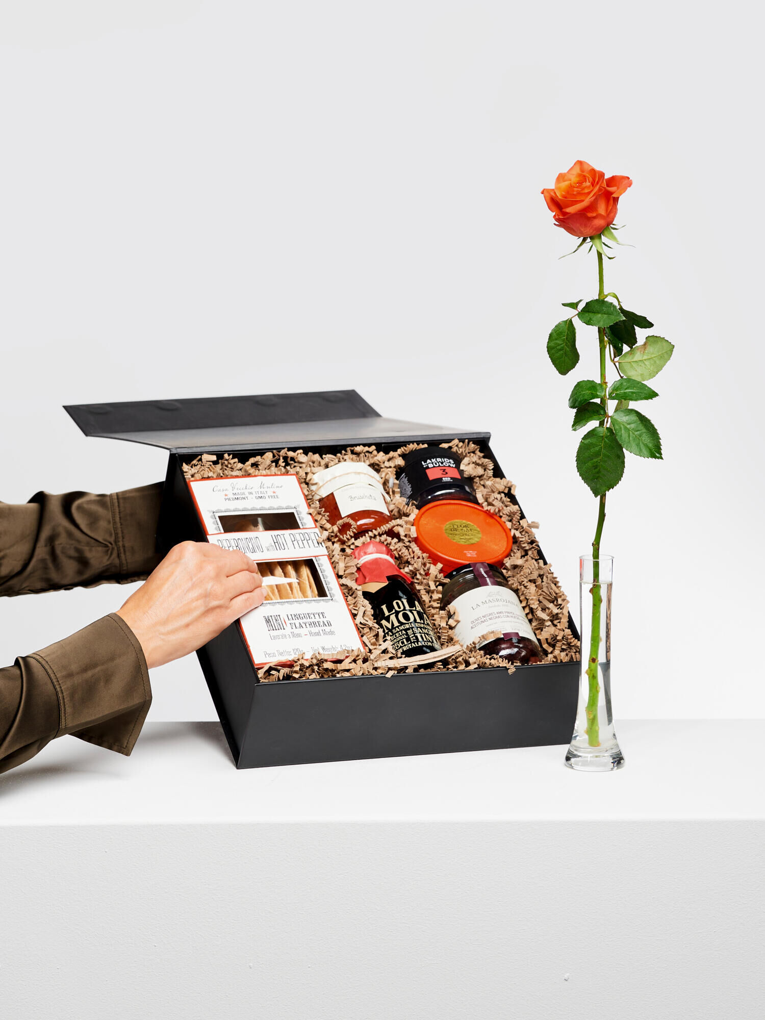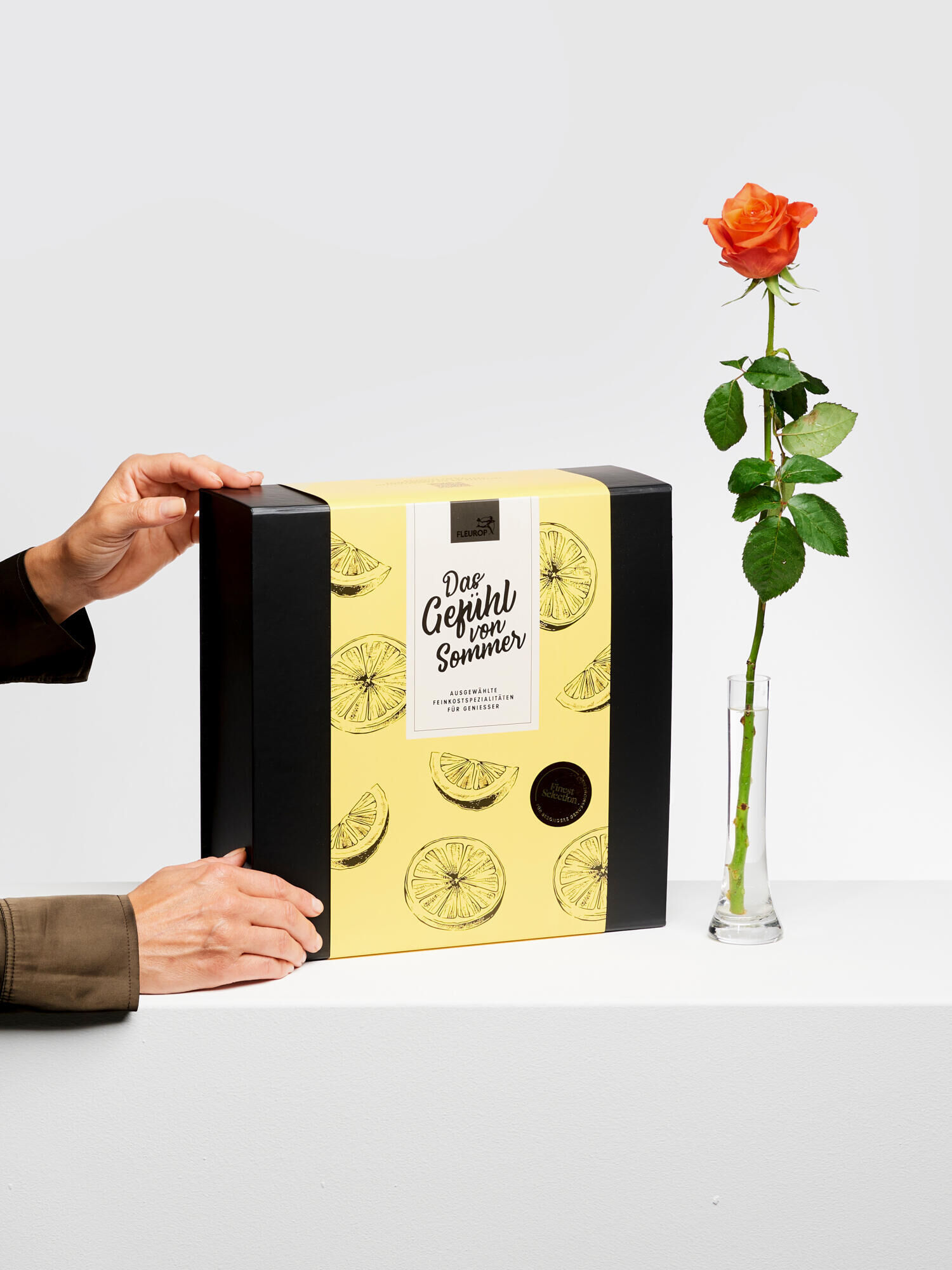Verschenken Sie das Gefühl von Sommer und zaubern Sie Fröhlichkeit und Sonnenschein in jeden Raum! Genießen Sie unsere ausgewählte Feinkost, die einfach gute Laune macht und nach Sommer schmeckt: Edelste Feinkost-Kreationen kombiniert mit einer orangefarbenen Rose. Perfekt für Sie oder als Geschenk!