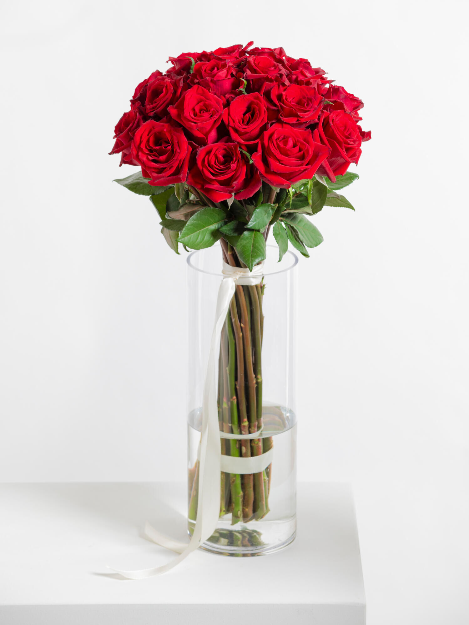 Sagen Sie „Je t’aime“ mit diesem einzigartigen Rosenstrauß. Der edle Blumenstrauß fasziniert durch die Schönheit und Eleganz der roten Premium-Rosen. Unsere erfahrenen Floristen arrangieren jeden Strauß mit viel Kunstfertigkeit in Form eines majestätischen Zepters. Veredelt mit einem zarten cremefarbenen Band erhält der Strauß einen Hauch von Raffinesse.