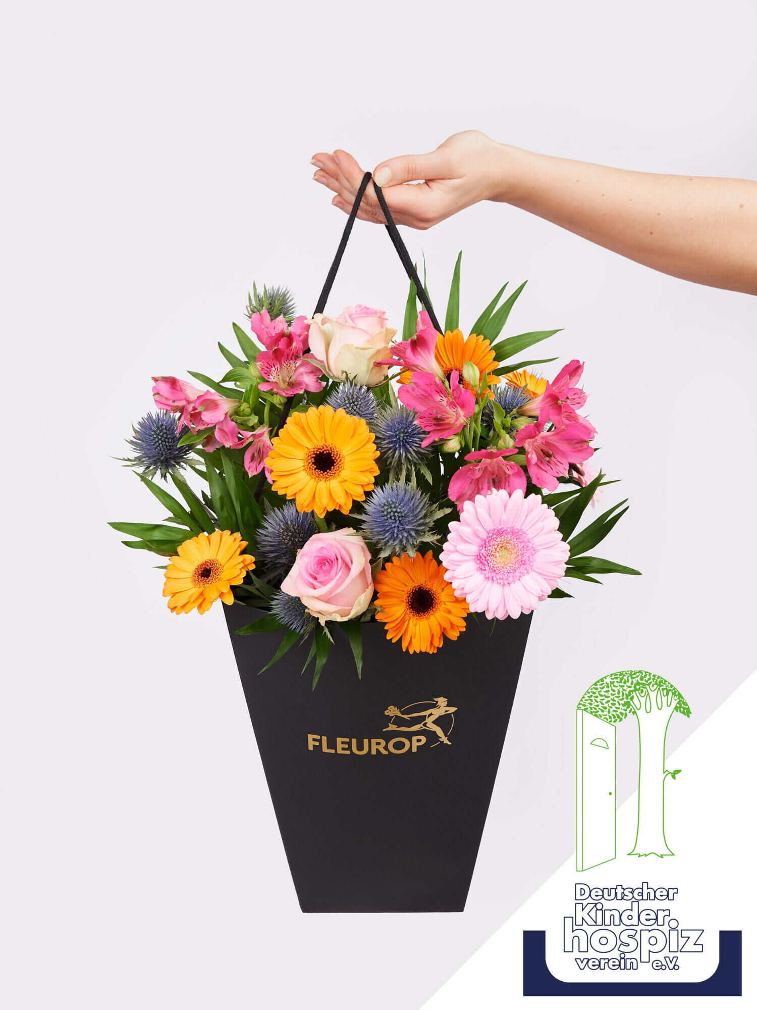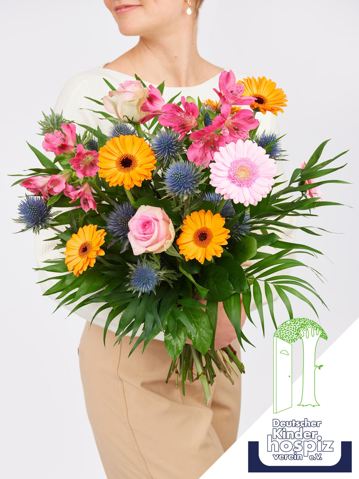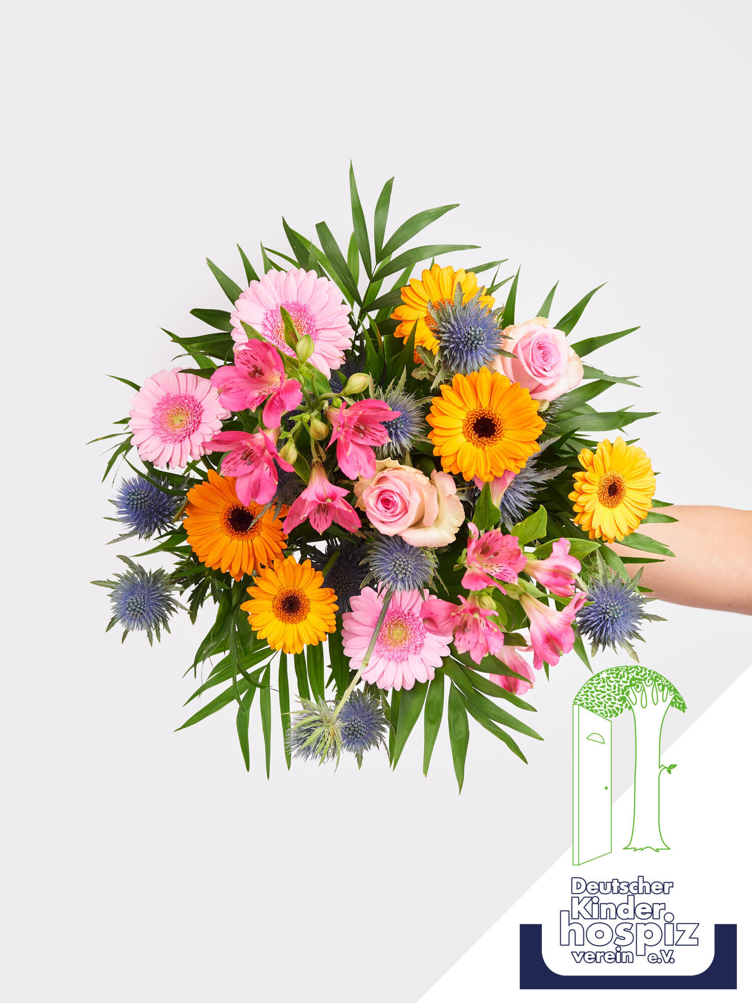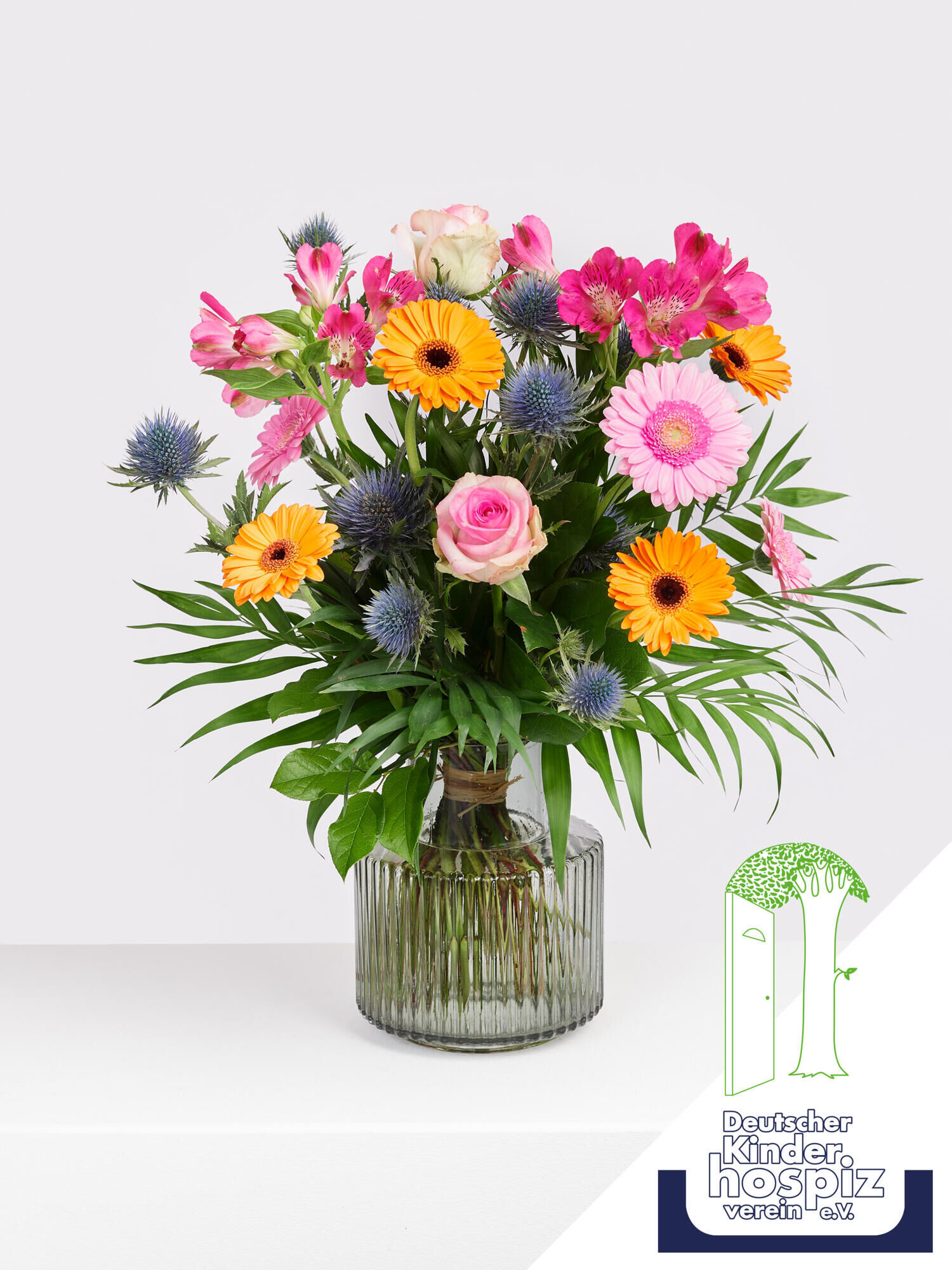 Der „Charity Strauß“ ist mehr als nur ein Blumenarrangement; er ist ein Symbol der Hoffnung und des Mitgefühls. Bringen Sie pure Lebensfreude in Ihren Alltag und setzen Sie sich gleichzeitig für eine wohltätige Organisation ein, denn jeder Kauf trägt dazu bei, die wertvolle Arbeit des Deutschen Kinderhospizverein e.V. (DKHV) zu unterstützen.