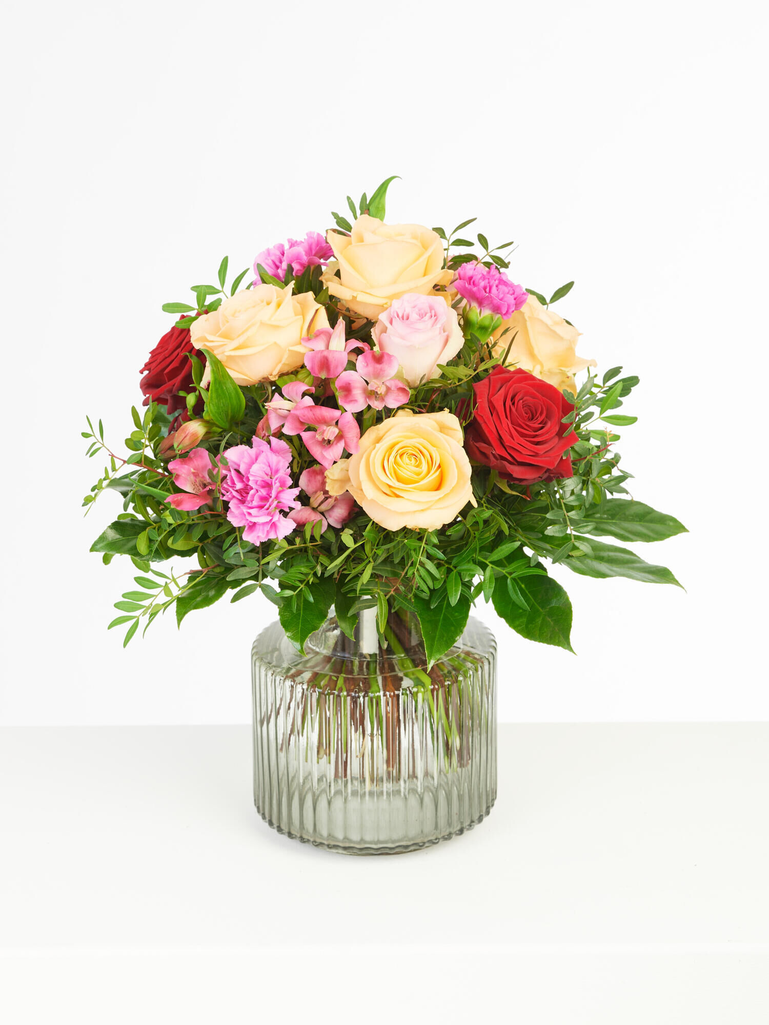 | die Blumen | Alstromerien, Nelken, Rosen |